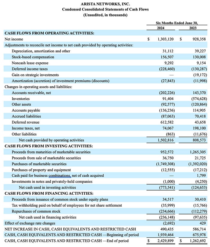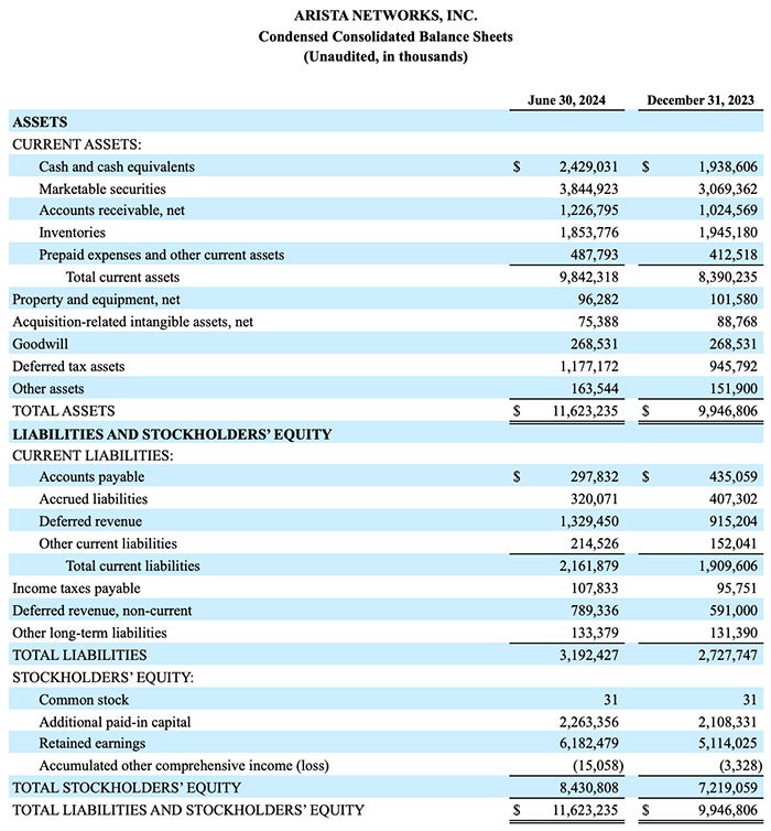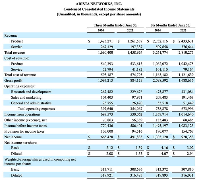 Arista Networks, Inc. Reports Second Quarter 2024 Financial Results