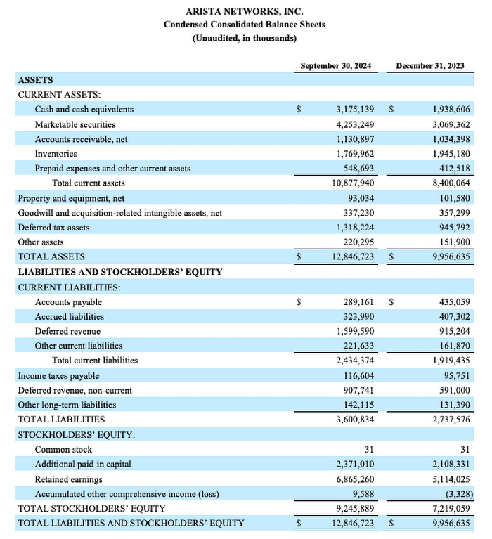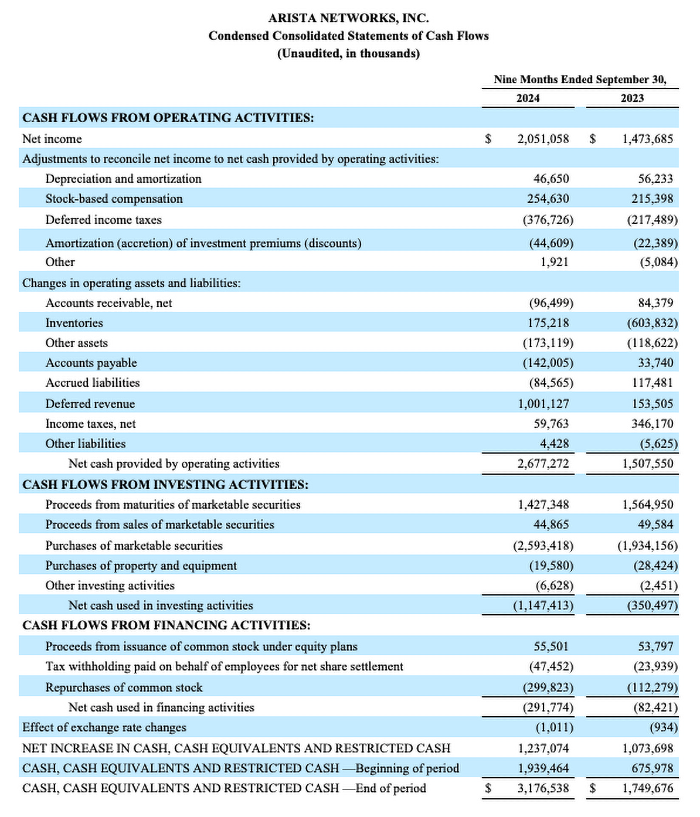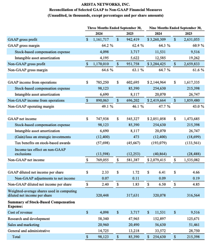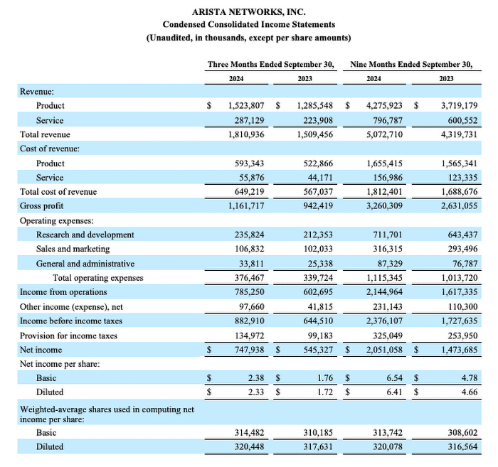 Arista Networks, Inc. Reports Third Quarter 2024 Financial Results
